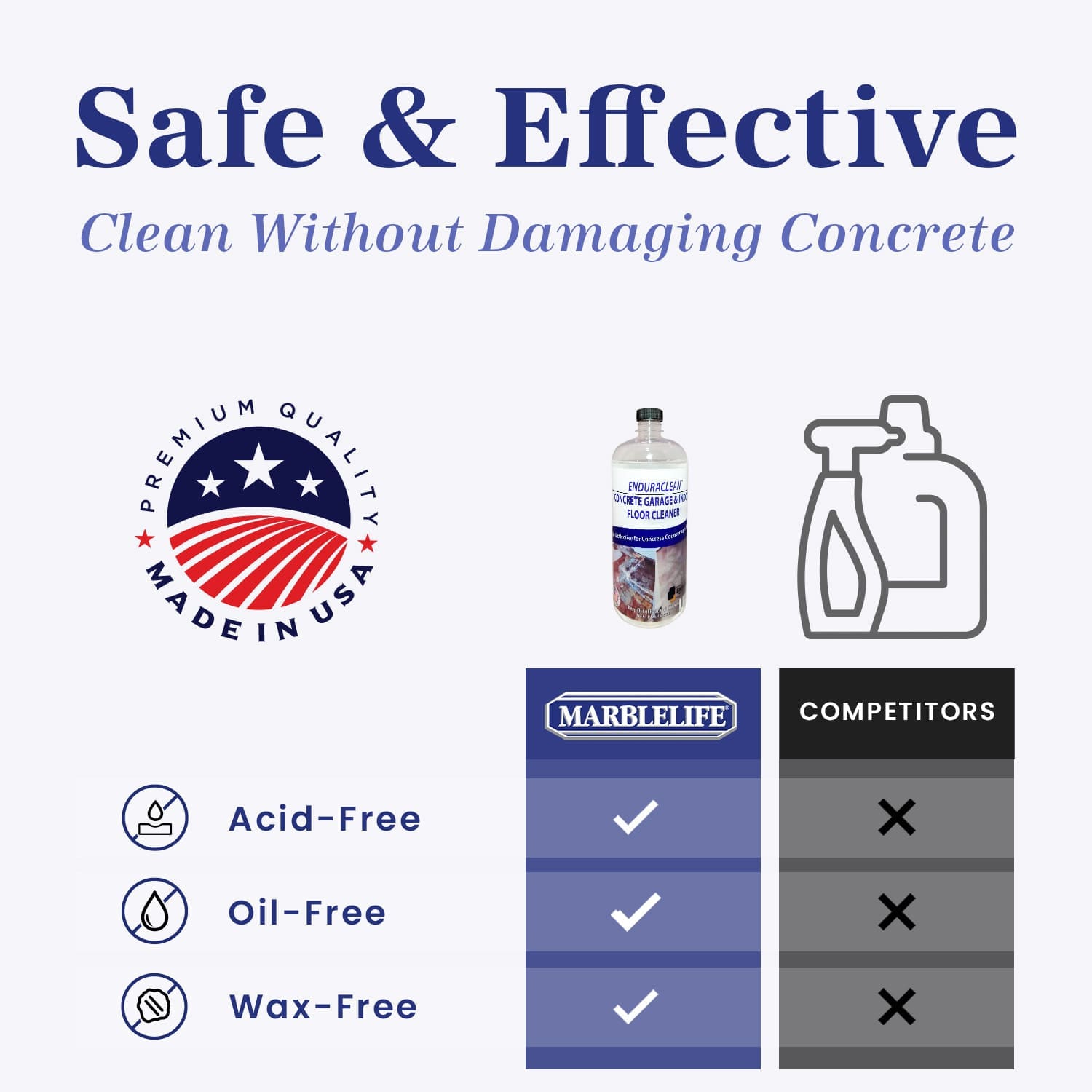 MARBLELIFE EnduraCLEAN GARAGE and INDOOR CONCRETE FLOOR READY-to-USE CLEANER is formulated for use on Natural Concrete Floors as well as polished, stained, and stained-and-polished. Whether basement or garage when it comes time to cleaning up, MARBLELIFE EnduraCLEAN is formulated to tackle the job.